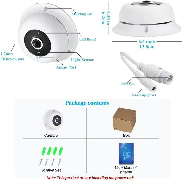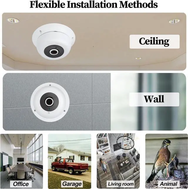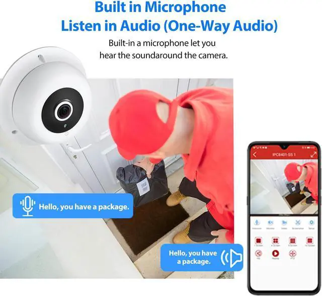 Built-in Microphone & 1.7mm Fisheye LensThis camera is built-in a microphone, it will capture the sounds around the camera, providing you with additional information to your security. The 1.7mm fisheye lens fixed lens on this camera offers 170° view angle to cover and protect a wider area, you can let the whole room/space under your eyes via one camera.