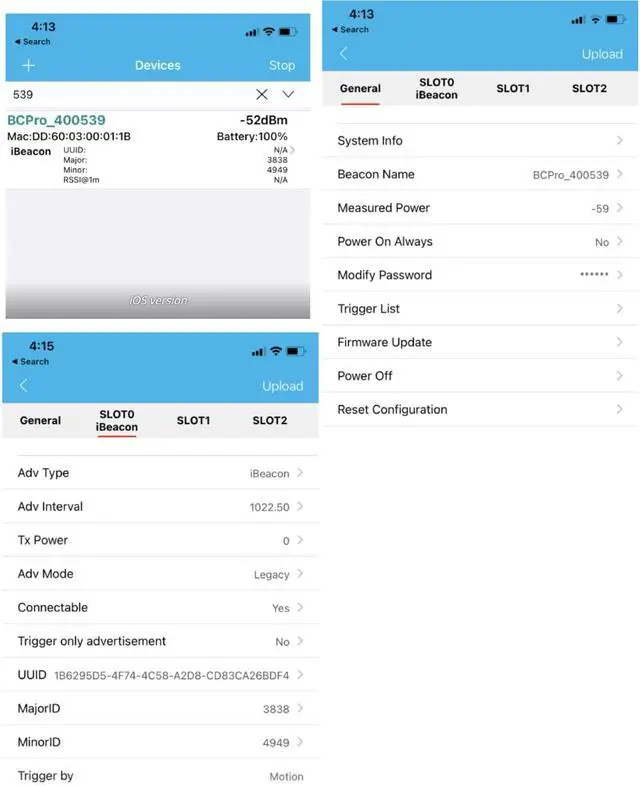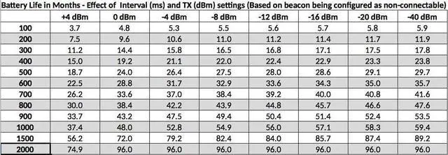 4 year battery life (CR2477 included). The battery is easily replaceable after 4 years. Real time battery level can be monitored using our KBeaconPro app or retrieved programmatically using a scan request method or broadcast as part of a TLM broadcast. "Pro" version firmware opens up many different options for configuring.