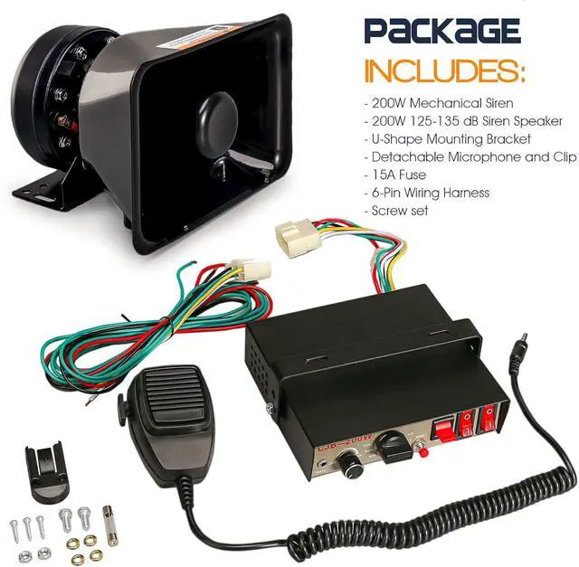 Universal siren compatibility --- This Siren PA System is the perfect choice for vehicles of all sizes, including trucks, SUVs, sedans, compacts, ATVs, UTVs and Police, ambulance, fire, engineer, private vehicles, etc.