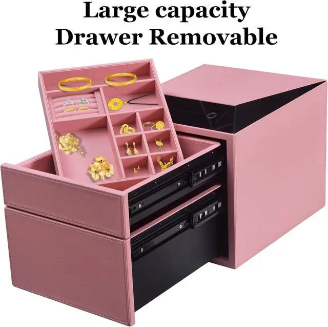 Premium Multi-Layer ProtectionThis jewelry safe for home combines a digital keypad, biometric fingerprint lock, and backup keys for triple security. The high-strength alloy lock core and steel-reinforced leather-wrapped body ensure durability, while the slide-away drawer design offers quick access to valuables like watches, rings, or pistolsperfect as both a watch safe and gun safe for pistols