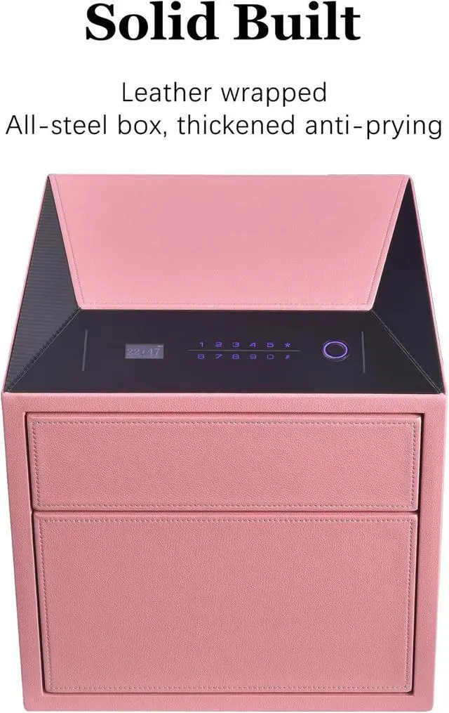 Elegant & Multi-Scenario UseDesigned to elevate spaces, the leather-wrapped home safe fits seamlessly in living rooms, wardrobes, or nightstands.Its anti-theft alarm and dual-function storage (for pistols or jewelry) make it a must-have home safe box for security-conscious households