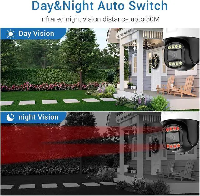 Dual-mode night vision + IP66 waterproof, reliable operation in all weather conditions: built-in red light for black-and-white night vision in complete darkness, warm light supports full-color imaging in low-light environments; IP66 dust-proof and waterproof grade, resistant to wind, rain, and dust, suitable for indoor and outdoor installation.