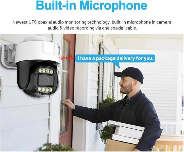 Coaxial control + built-in microphone, integrated operation and monitoring: directly control PTZ rotation through DVR menu, no additional wiring required; built-in microphone supports coaxial audio transmission, synchronous recording of audio and video, more comprehensive monitoring.
