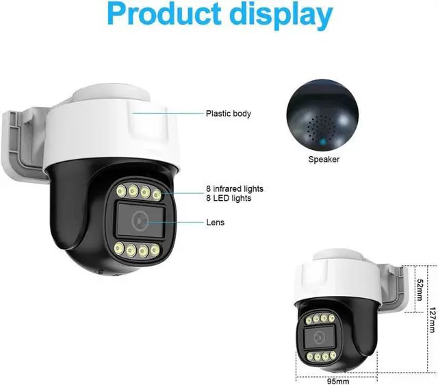 360° panoramic PTZ rotation, no blind spots in monitoring range: supports 360° horizontal rotation and multi-angle elevation, combined with wide-angle lens, easily covering large spaces such as homes, offices, and shops, and also able to take into account details in long-distance monitoring.
