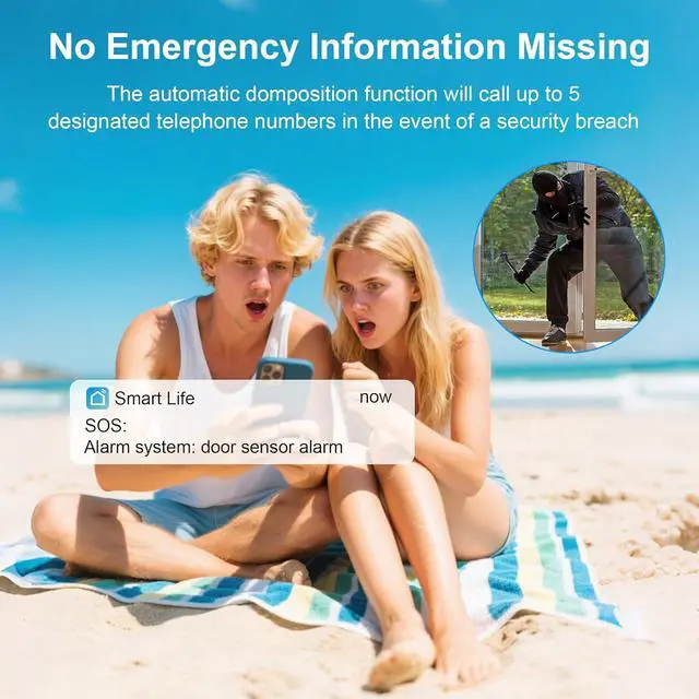 WiFi Home Alarm: Connect to Wi-Fi (2.4G) via Tuya App and place the sensors where you need them most. The ultra-high decibel siren helps deter intruders. The Hub has a built-in rechargeable battery. It can keep working for 2-3 hours in emergency situations such as power outages.