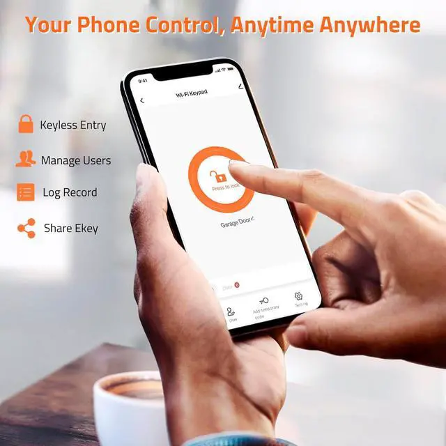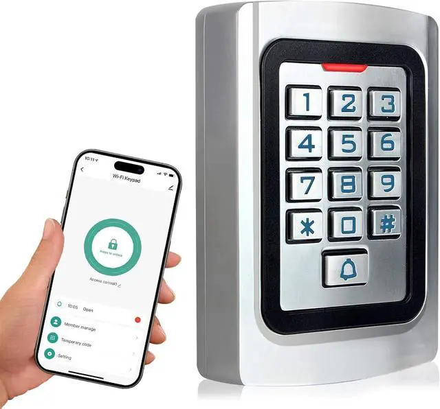 Multiple Access WaysSupports up to 2000 users with PIN codes, RFID key fobs/cards (5 included), card + password and remote unlocking via the free Tuya app. View access logs, and set temporary Code or permanent access from your phone anytime, anywhere. Perfect for homes, guests, deliveries, Airbnb, offices, garages, and commercial gates.