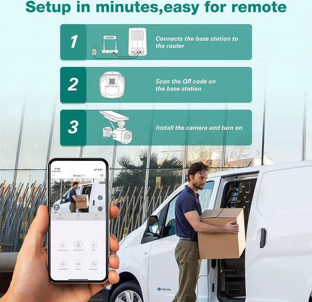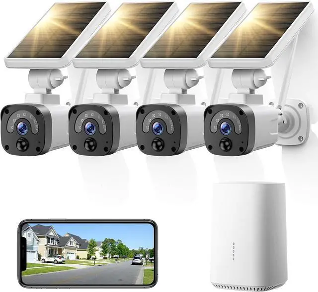 Solar Powered &100% WirefreeNo additional power supply is required, the 4 solar security cameras are equipped with solar panels and rechargeable batteries to provide non-stop power, so you do not need to take off the cameras for recharge frequently.100% No Hassles of Wiring, can be installed anywhere. (Notes: The base station does not support connecting to the network via 2.4G/5G WiFi,