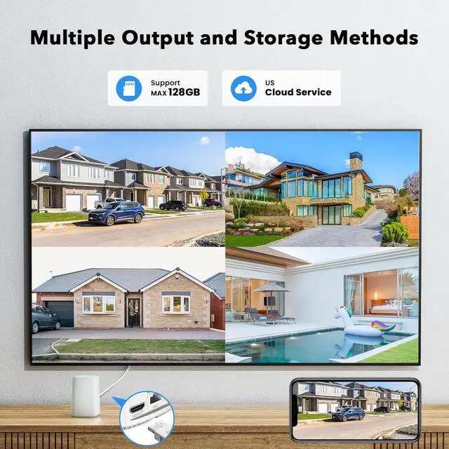 2 Storage Methods &Risk-freePurchase: The solar camera outdoor wireless has 2 storage methods, you can choose to use a micro SD card( Max.128G SD, NOT INCLUDED) or cloud service (this is not mandatory)to store the recorded videos, No hidden costs, subscription plans are optional and the cloud can be closed manually.e.