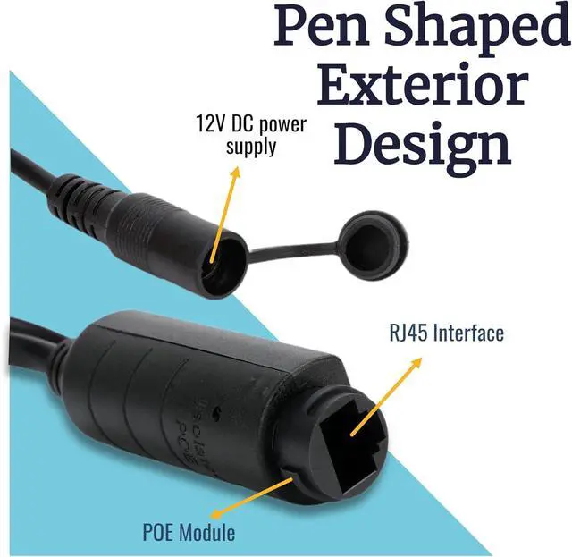 POE Network Interface: The small CCTV security camera can be powered by a POE switch or a 12V DC power supply. With a unique pen shaped exterior design, compact size, and stylish appearance, it is convenient for carrying and use.