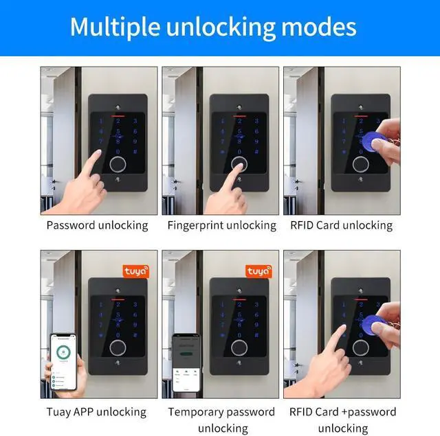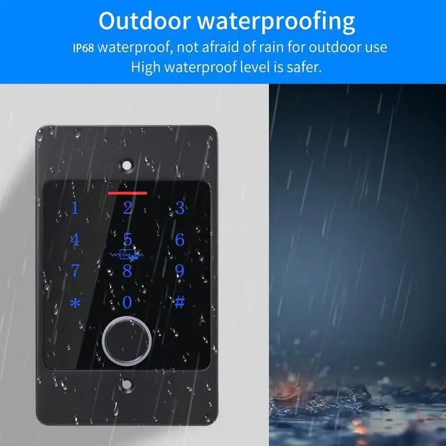 This device is a new generation metal waterproof fingerprint lock & RFlD card standalone door access control system with Tuya App Management. lt has the zinc alloy housing,which is anti-explosion and anti-vandal.
