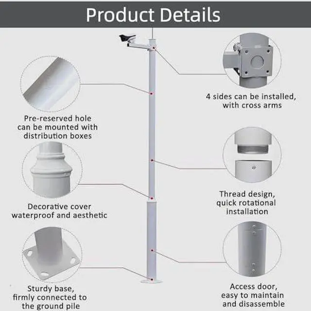 Secure your space with our versatile Floor Security Camera Holder Post. Ideal for various equipment, it can be easily installed in locations such as intersections, parking lots, public squares, schools, residential areas, farms, industrial parks, and tourist attractions. Enhance safety and surveillance in any setting with this reliable solution.