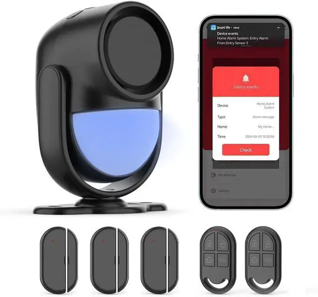 Smart Home Alarm System A smart way to protect your house with LUCKYDEER Smart Home Security System. 3-piece kit includes the 1 motion sensor alarm siren, 2 windows & door sensors and 1 remote controls. (You can add up to 24 door/window sensors and 10 remotes to the central alarm host.)