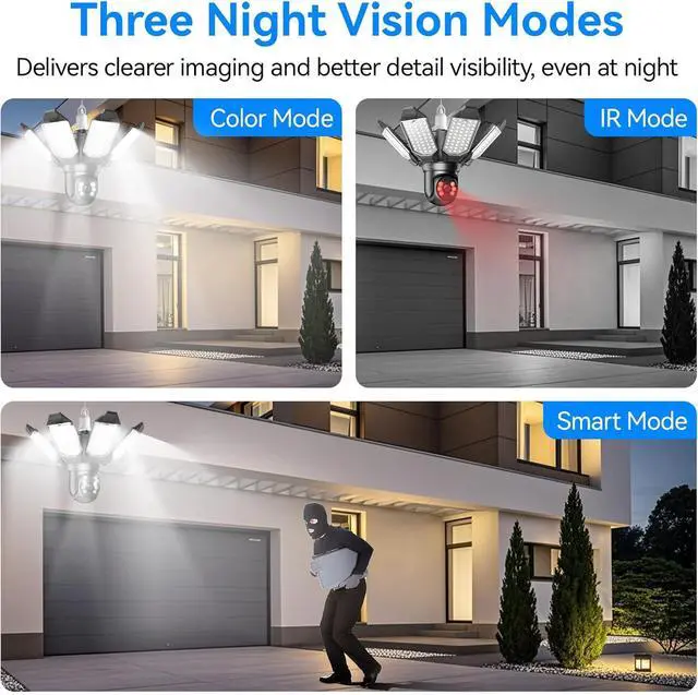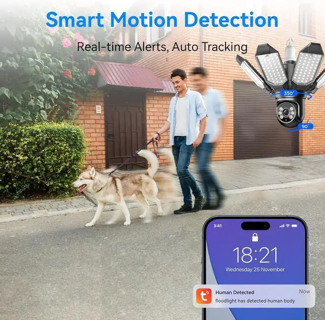 Smart Motion Detection & Auto Tracking: Advanced sensors detect and track moving objects, automatically activating the floodlights. Real-time alerts are sent to your smartphone, ensuring you stay informed and protected at all times