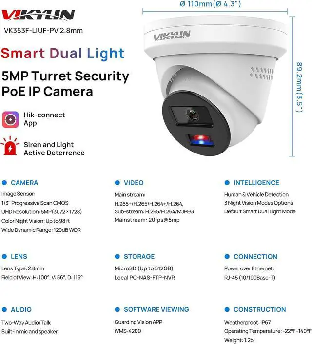 P2P Remote Access, Multi-Platform Login Guarding Vision App works on Android/iOS, P2P Control of 5MP PoE Cameras. You can also use the IP address to view the live feed on web browsers. No monthly fee is needed. H265+ compression allows for maximum encryption with the latest technology as well as backward compatibility with legacy platforms. We value the security of our customers' data, vikylin cameras are trustworthy! 3-year warranty and lifetime technical support.