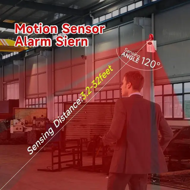 Detection Range: Equipped with advanced microwave sensing technology, the alarm can sensitively detect the movement of people or objects, ensuring timely activation. The alarm has a 120° cone-shaped detection range, with a sensing distance of 1 to 10 meters. The optimal installation height is between 2 and 2.5 meters from the ground.