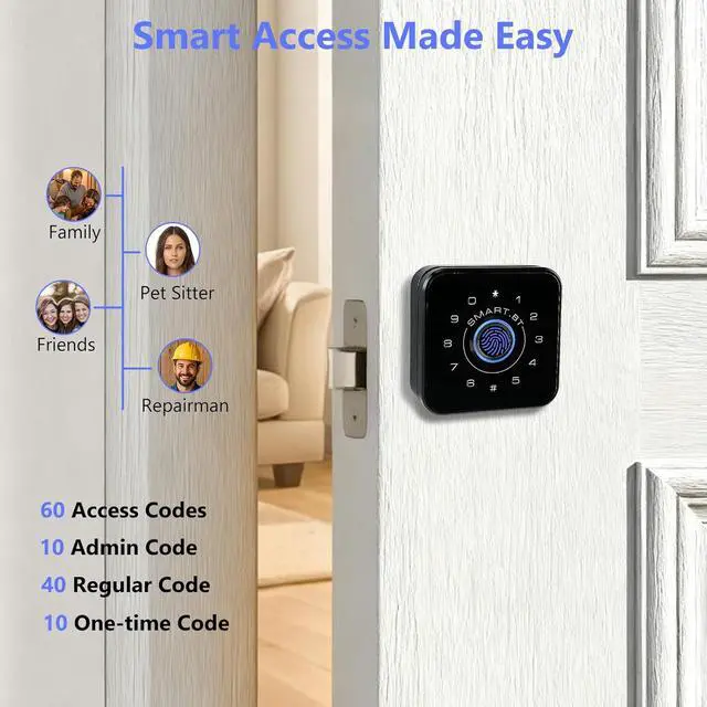 [Fast and Reliable Fingerprint Access]: Biometric sensor ensures quick, touch-free access from any angle. Supports multiple fingerprints and passcodes, ideal for families, offices, and rental properties needing secure, authorized entry.