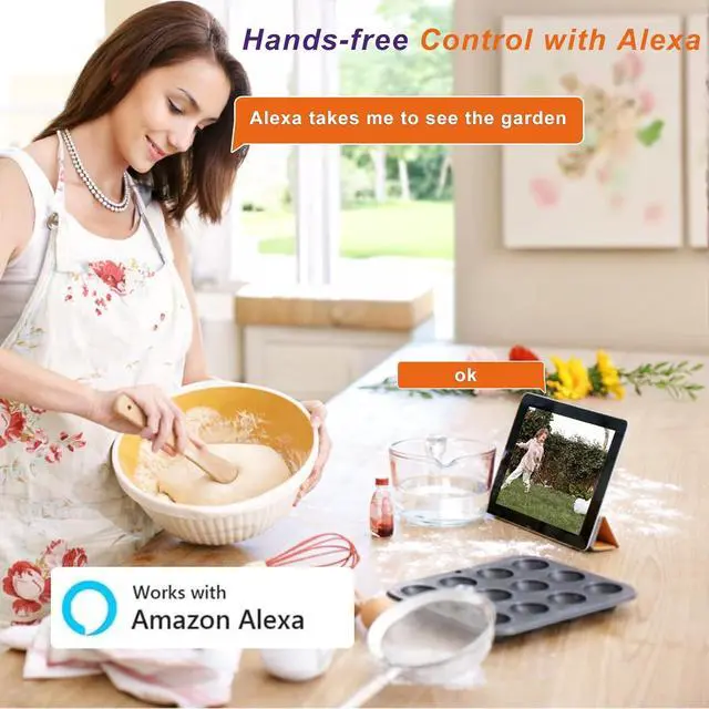 Works with Alexa& Two-way AudioYou can control Alexa to use the camera, with a built-in microphone and speaker to communicate with your home while you're out and about