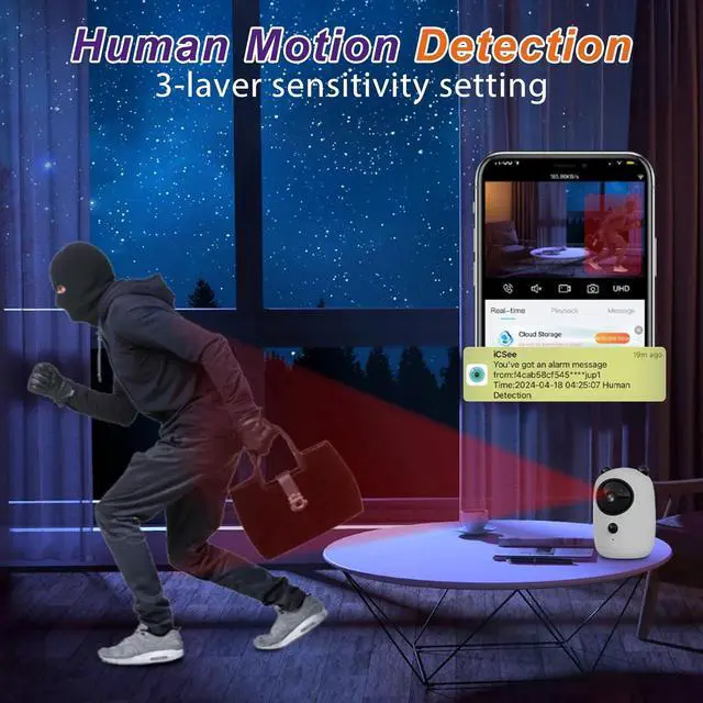 Smart Siren & 24/7 Motion Alert: Intelligent Alerts & 24/7 Motion Notifications. The baby camera supports motion detection and push alert to monitor your baby/pet/elder. When your baby crawls over the bedside or your pet is making a mess, baby camera monitor will send alert message on your phone to let you know