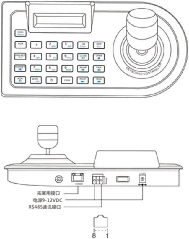 The control keyboard can also directly control the terminal decoder to realize the control of the front-end equipment such as the pan/tilt, lens, light, and wiper. And multiple keyboards can control a same terminal device.In addition to all the functions of a 2 keyboard, the 3 keyboard also has the function of rotating the joystick handle to reduce or enlarge the lens field of view.