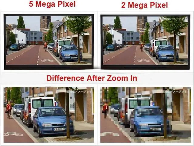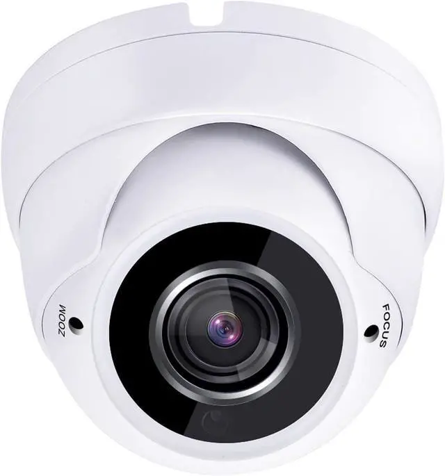 1/2.9" 5 Megapixel Progressive Scan CMOS Sensor; 2.8-12 mm Variable Focus Wide Angle Lens 30 meters IR range; 24pcs IR infrared LEDs; Day/Night; IP66 weatherproof, Vandal proof; Multi-Axis for Wall or Ceiling Mounting.