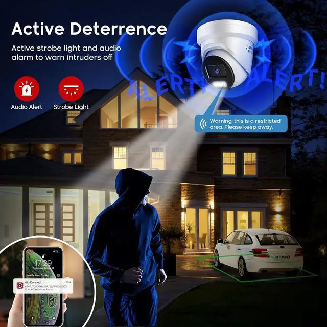 Active DeterrenceBased on powerful man-vehicle detection technology, once an intruder triggers the alarm, the active Strobe Light and Audio Alarm will immediately warn the intruder off and you will receive an immediate alert notification. You can communicate with the intruders via Built-in Two-way Audio. Audio and alarm interface available, you can also DIY with the equipment you want. (TIP: Two-way audio needs to be opened manually)