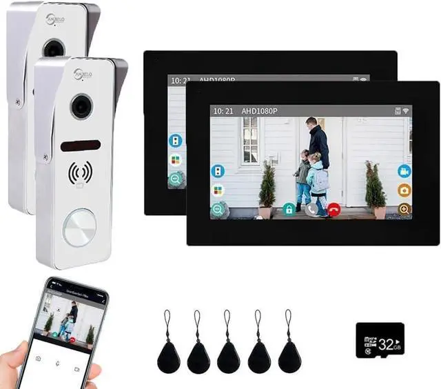 3 IN 1 UNLOCK & AUTOMATICALLY RECORDING:This device has multiple unlock methods. You can unlock by ID card, APP and touch monitor. It's very convenient and flexible. 5 ID Cards are included.When triggered motion detection, the camera will automatically snapshot or video recording and save in the Micro SD card(Including 32G SD card) of monitor. You can check the recording via smartphone anytime.