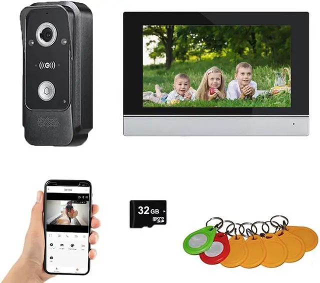 7 INCH TOUCH MONITOE AND 1080P DOORBELL:7 inch touch screen monitor, touch operation, hands-free, support Wifi to connect to the Internet. Outdoor doorbell with waterproof cover, built-in infrared sensor and 1080P camera,120°to 140 °wide angle, night vision, waterproof, dustproof and vandal resistant. You can connect all 12V electronic locks.