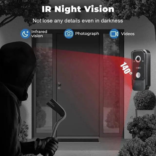 MOTION DETECT & AUTOMATIC RECORDING:The wireless video intercom is equipped with motion detection:when visitors press the doorbell or motion detection is triggered, the doorbell camera will automatically record videos or snapshots and save them to the additional Micro SD card(32G card include) to protect your home every day. You can view it on your cell phone or monitor.