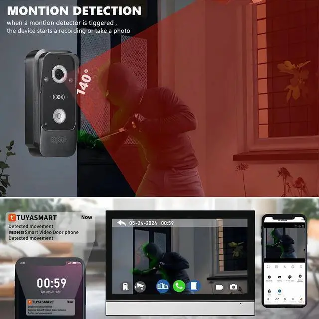 .Anti-tamper Alarm: The Montor supports outdoor doorbell Camera +CCTV AHD Camera, dual security monitoring, More safer and more comprehensive monitoring of every corner of the house , and support Montion detection function, and your phone can receive the alert, increased cctv Anti-tamper Alarm function, so that thieves have nowhere to hide, providing a safe living environment