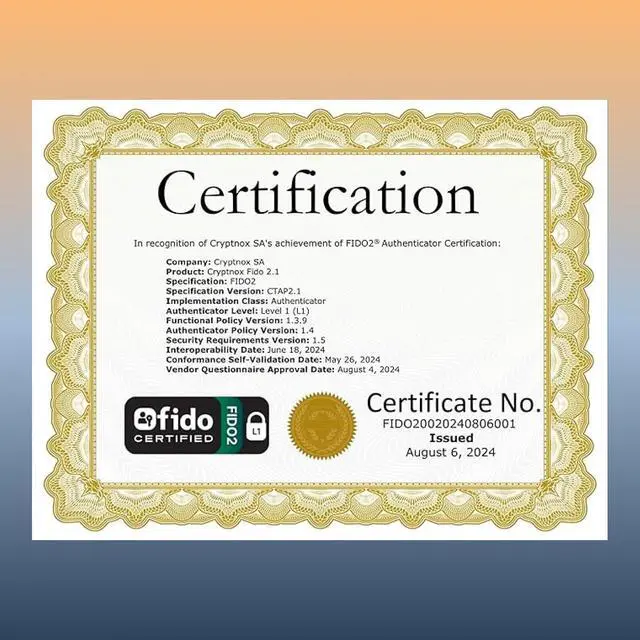 ADVANCED SECURITY FEATURES: Experience robust protection with Crpytnox security keys for two factor authentication across operating systems and web platforms with passwordless or two-factor authentication. Prevent phishing attacks effectively with our certified FIDO2 technology.