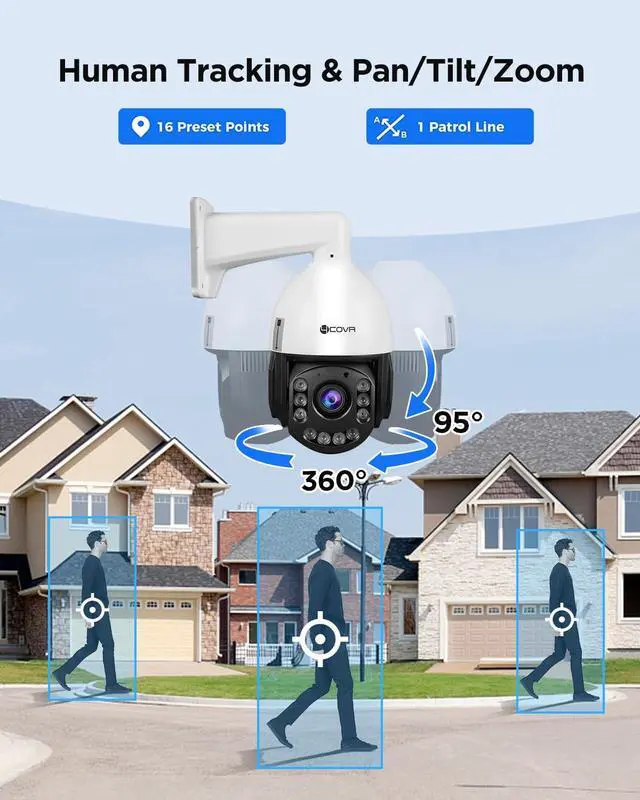 SMART AI PEOPLE/VEHICLE DETECTION AND AUTO HUMAN TRACKING: Combines intelligent people/vehicle detection with human auto tracking, it supports automatically tracking any moving human targets.