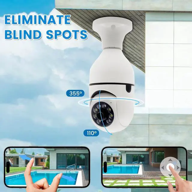 HD Imagery and Full-color Night VisionEquipped with an ultra-clear lens, the picture quality is crisp, allowing you to easily see details in the image. Even when partially zoomed in, it can deliver a sharper surveillance image. Light socket security camera supports infrared night vision and full-color night vision, ensuring high-quality video recording both day and night.