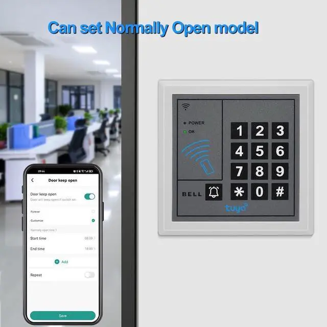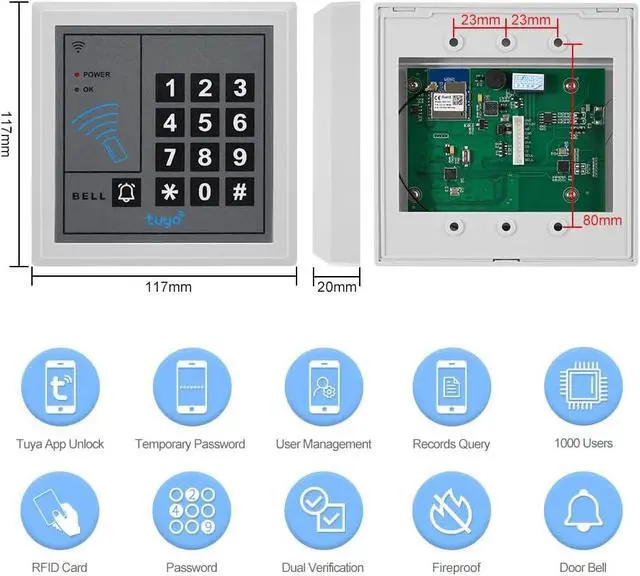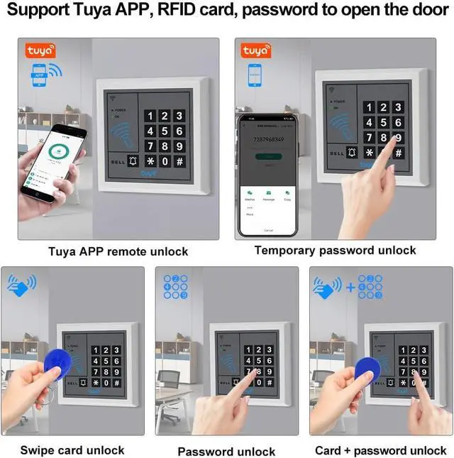 The K1 access control keypad offers multiple ways to open the door, including password, RFID keychain, password + keychain, and Tuya app, adapting to different user habits. It is safe and convenient. It supports 1,000 users, enough to meet the access management needs of large numbers of people in scenarios such as homes, offices, warehouses, and B&Bs.