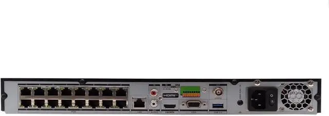 16 channel PoE IP camera input, supporting cameras up to 32MP with a maximum incoming bandwidth of 256 Mbps