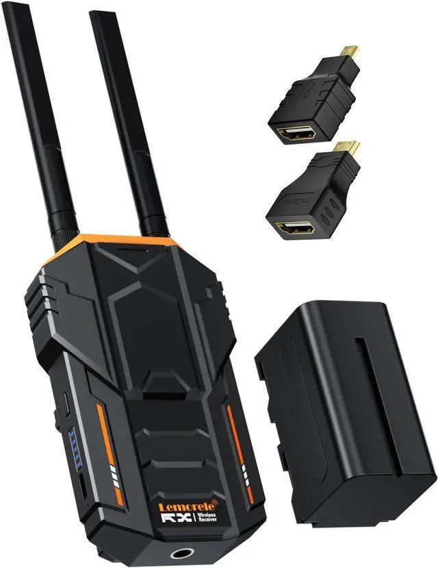 Wireless HDMI Video Receiver with 4400mAh BatteryLemorele wireless video receiver is equipped with loop out and IR function for ultra-long distance transmission; Meanwhile, the high capacity battery brings you super endurance. Mainly used in Outdoor Shooting,Live Broadcast,Sport Match,Meeting,Mini Concerts,Wedding Ceremony and etc.