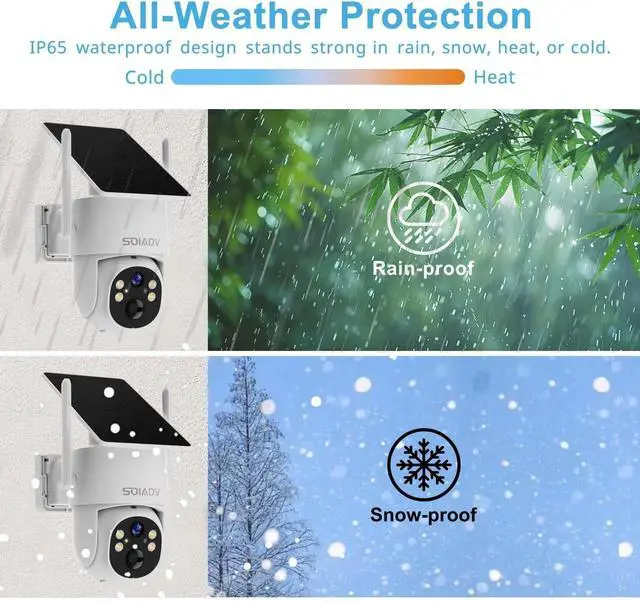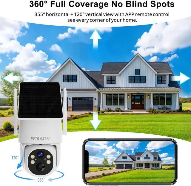 Solar Powered All Around Camera: With solar panel and its rechargeable battery, experience always on solar camera security outdoor. Control solar security camera pan & tilt to view your world from every angle. The non-stop power supply and full coverage view design give you 365-day protection and ensure your home's safety.