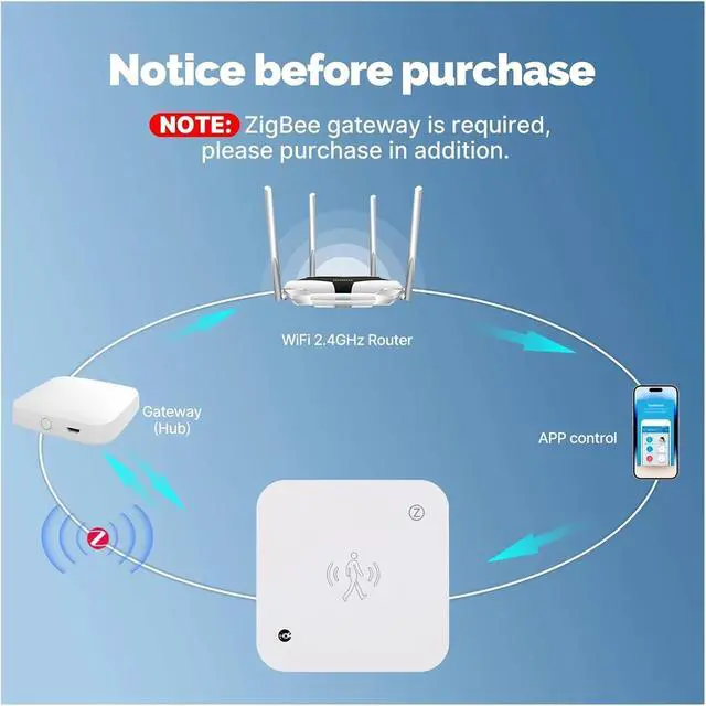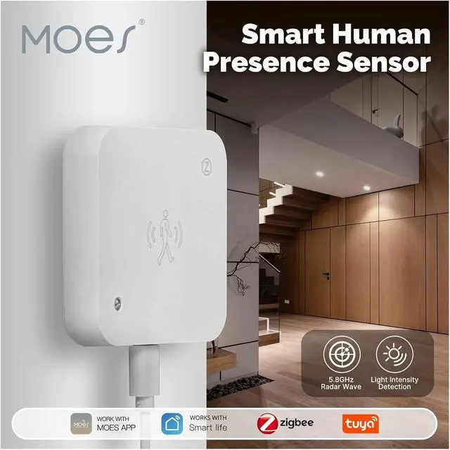 WiFi/ZigBee Tuya Smart Human Presence Sensor Motion Motionless Detection Light Luminance PIR Sensor Wired, App Notification(WiFi)