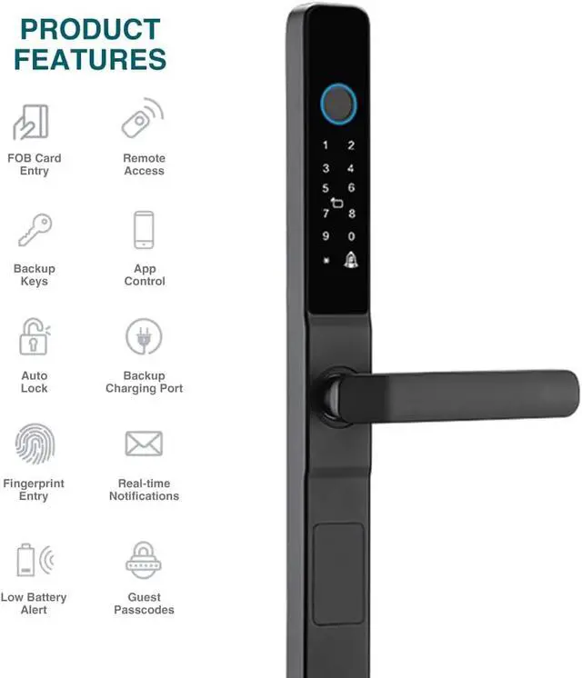 SIX UNLOCKING METHODS: Access your home using fingerprints (100 capacity), smartphone app, touchscreen keypad (100 passcodes), NFC swipe cards, voice commands, or traditional keys for ultimate flexibility and convenience.