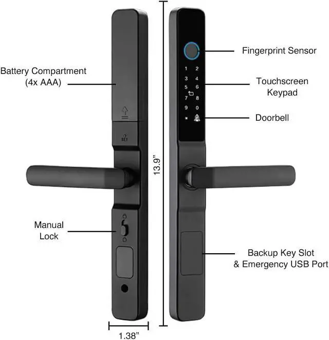 EASY INSTALLATION & BACKUP POWER: Simple setup on most standard doors. Replaces existing mortise locks with just a screwdriver - no special tools or professional locksmith needed. Powered by 4 AAA batteries with low battery warnings and USB emergency power supply option.