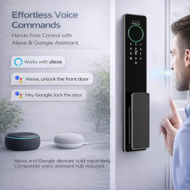 7-in-1 Advanced Keyless Entry: Experience ultimate flexibility with Face Recognition, Palm Vein Scanning, Biometric Fingerprint, Anti-Peep Keypad, Physical Keys, Mobile App, and Voice Command technology. Never worry about being locked out again.