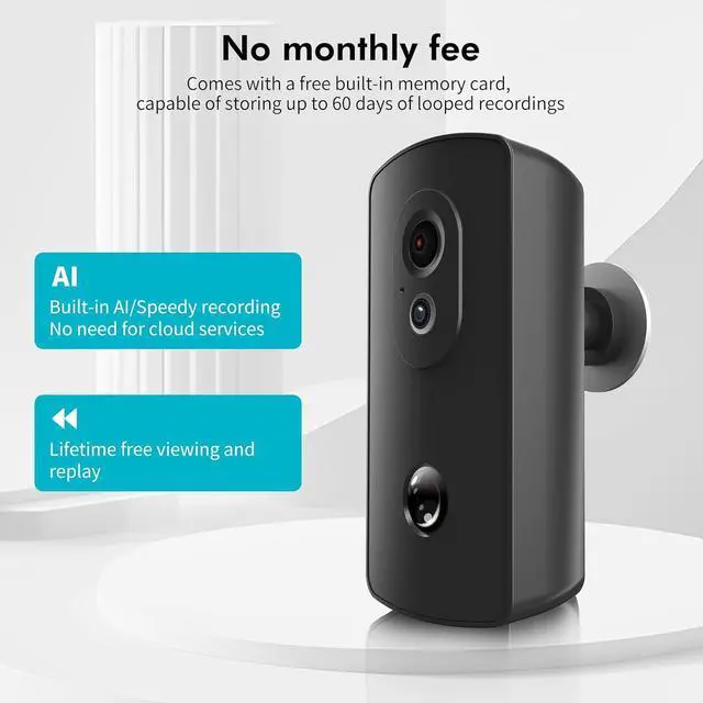 Includes a free built-in SD card , No Subscription NeededThis wireless home security camera supports loop recording on the included SD card for up to 60 days of video storage, without monthly fees, cloud services, or advertisements , and can be used without a network
