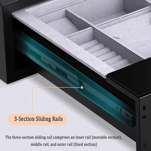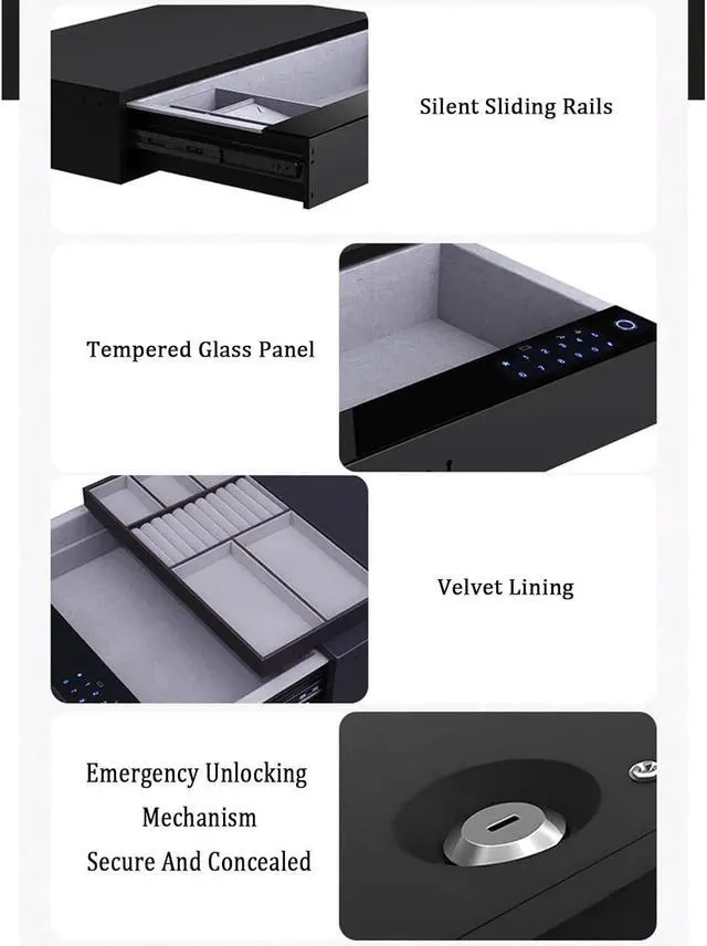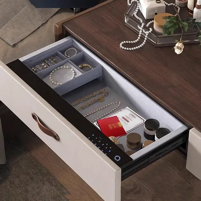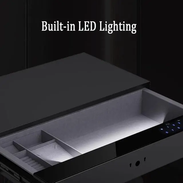 Smart Drawer System: This home safe includes removable jewelry trays to organize necklaces, bracelets, and other small items.With a simple press of the button on the desired drawer level, it opens instantly for easy retrieval