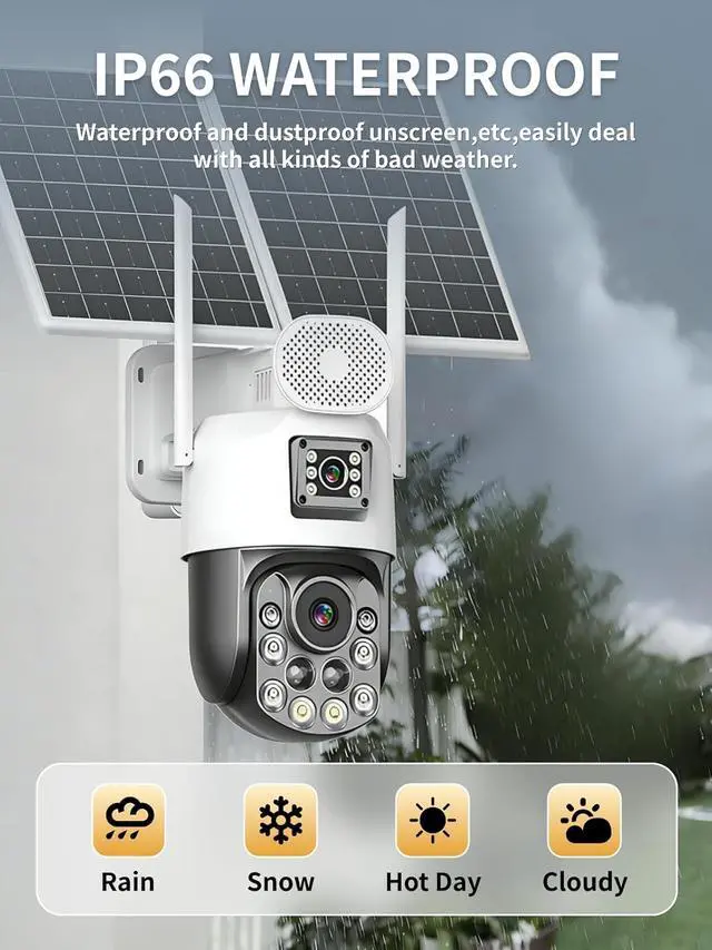 Memory Card Storage & IP66:The 4G security camera supports memory card storage for secure footage recording. With an IP66 rating, its built to withstand harsh weather conditions, ensuring consistent outdoor performance and protection for your property year-round.