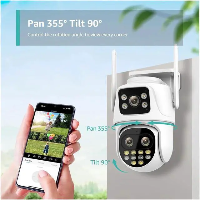 355° panoramic view + 8x zoom, no details missed: 355° horizontal + 90° vertical rotation coverage, combined with 8x digital zoom, even distant scenes can be clearly magnified; dual night vision modes (full color / red light), capturing key details even in the dark, no monitoring blind spots.