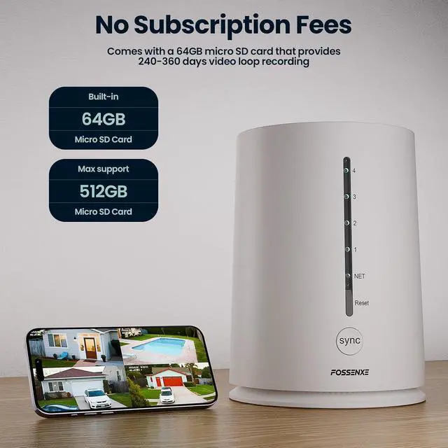 120-Day Local Storage, No Monthly Fee: All recordings will be encrypted and stored in home base. The provided 64GB local storage(expandable to 512GB) provides up to 4 months of footage - no hidden cost, no cloud dependency for storage. Even if the solar powered security camera are damaged or lost, the advanced encryption technology ensures your data remains exclusively yours, protecting your privacy
