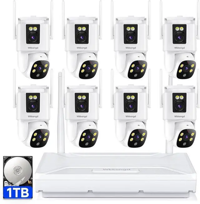 10 Channel WiFi 6 NVR & 24/7 Recording - The 10 channel surveillance camera system supports 2.4G/5G WiFi, dual signals to enhance the monitoring range and video smoothness. The cameras are plugged in to ensure constant monitoring, all year round, watch playback anywhere you want.The NVR comes preloaded with an extra-large 1TB capacity (supports up to 6TB) for longer-lasting recording and peace of mind for playback