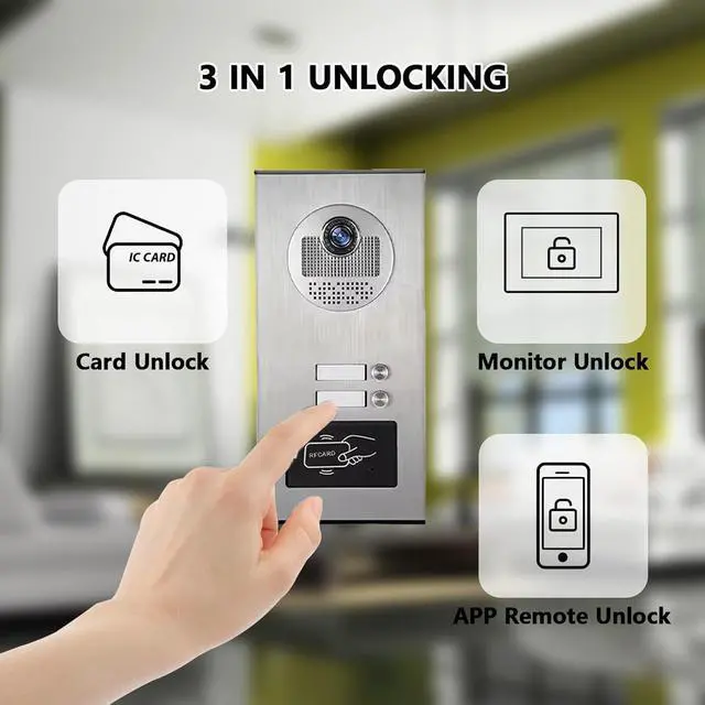 Multi-Family Design: 1 outdoor camera and 2/4/6/8/10/12 indoor screens for visual intercom doorbell system, supports 2/4/6/8/10/12 occupants in one building. Individual monitors without interfering with each other