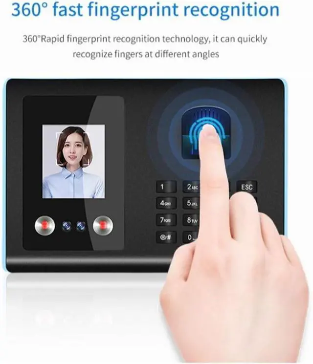 1. This advanced device combines face recognition, fingerprint scanning, and password entry for seamless employee check-ins