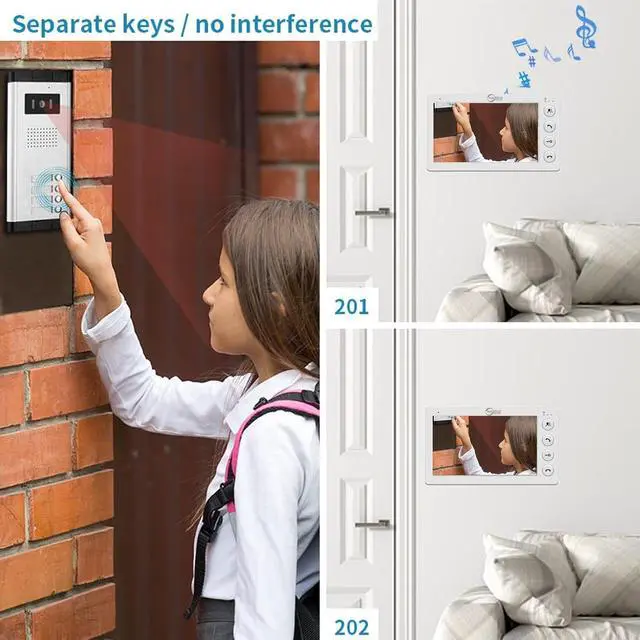 Multi-Family Design: 1 outdoor camera and 2/4/6/8/10/12 indoor screens for visual intercom doorbell system, supports 2/4/6/8/10/12 occupants in one building. Individual monitors without interfering with each other