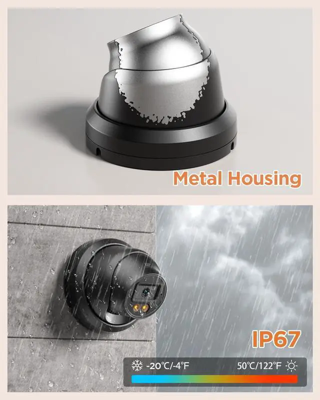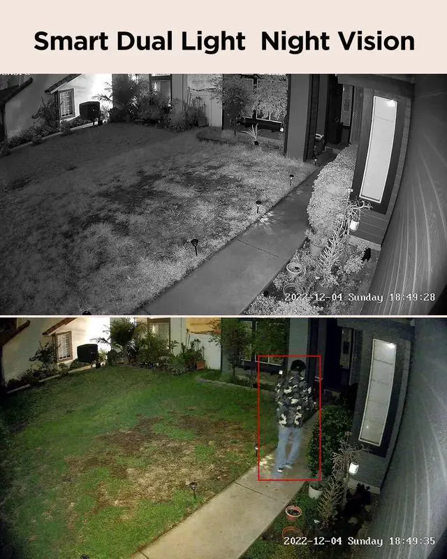 Overview: This 4MP camera captures ultra-high-definition 2560x1440 video through a 2.8mm wide-angle lens, providing a 110-degree field of view. It employs a smart dual-light system for full-color night vision, which operates primarily in an efficient IR mode to deliver black-and-white video with minimal light pollution. When a person is detected, the system automatically activates warm light for full-color recording and seamlessly reverts to IR monitoring once the subject leaves the area.